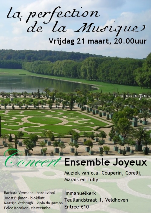 Frankrijk in de 17e eeuw. Aan het hof van Versailles zijn enkele grote componisten als Lully, Couperin en Marais in dienst van Lodewijk XVI. Allen borduren in hun composities voort op de weg die Lully is ingeslagen. En terwijl in Italië de viool al een vooraanstaande plaats heeft als zelfstandig solo-instrument, blijft men in Frankrijk bijna halsstarrig vasthouden aan een eigen stijl waarbij de viool wordt beschouwd als instrument voor minstrelen en voor dansmeesters en huispersoneel. De adel speelde luit of viola da gamba!